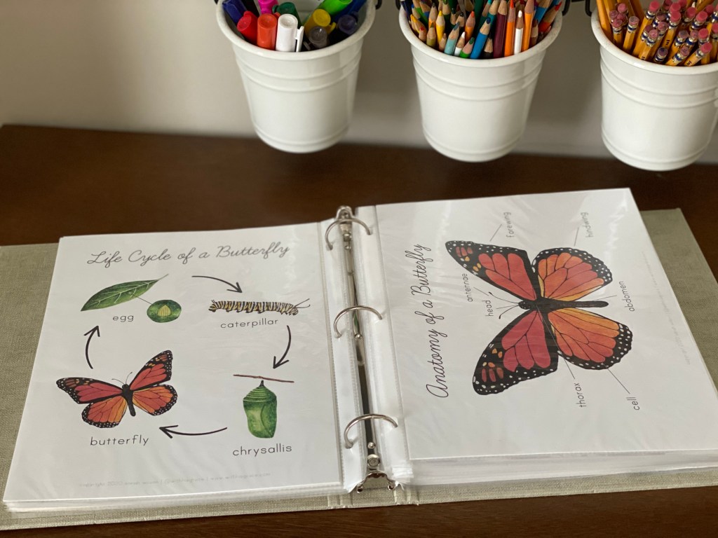 Speaking of nature resources, I use a binder with page protectors to store all of our large printed resources. Anytime we are learning about a certain topic I can just flip through the binder and easily find what in need.