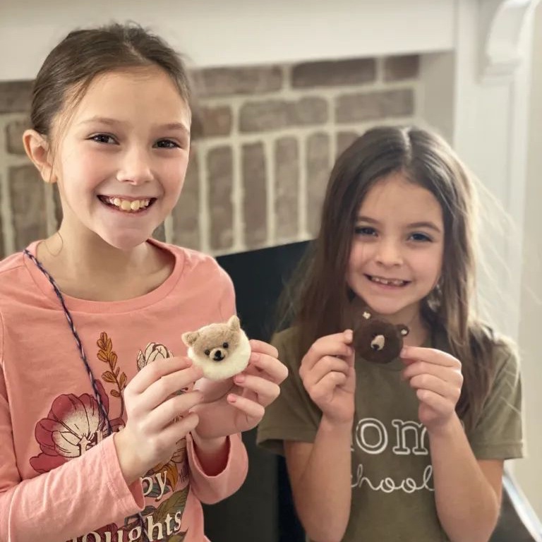 Needle felting is such a fun and forgiving craft! My girls love making little animals! If you’ve never tried needle felting before a kit is a great way to start! I also have a blog post all about needle felting if you want to learn more. You can find the post here.