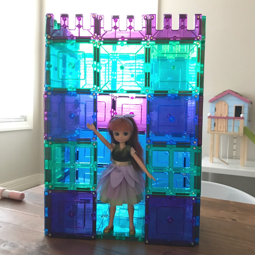I wish I had these when I was little. They are so much fun to create with and play! My girls have come up with the coolest creations using them. They have made castles, houses, and cars. Most recently they made a frozen lake for their Maileg mice to ice skate on.