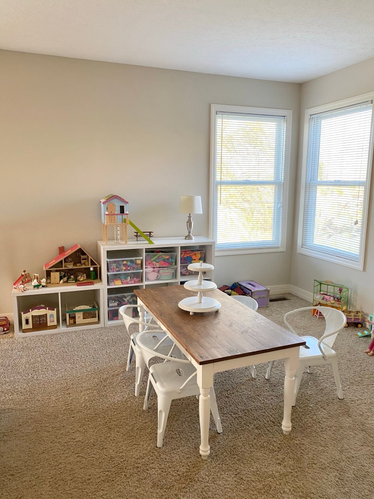 This is what it looked like at the end of 2020. We had a lot of cube storage shelves and most things were just on the floor. Nothing was on the walls. It looked a lot like a daycare center. A lot of my girls’ toys were also in their closet. But I really wanted all the toys in one space. We desperately needed more storage.